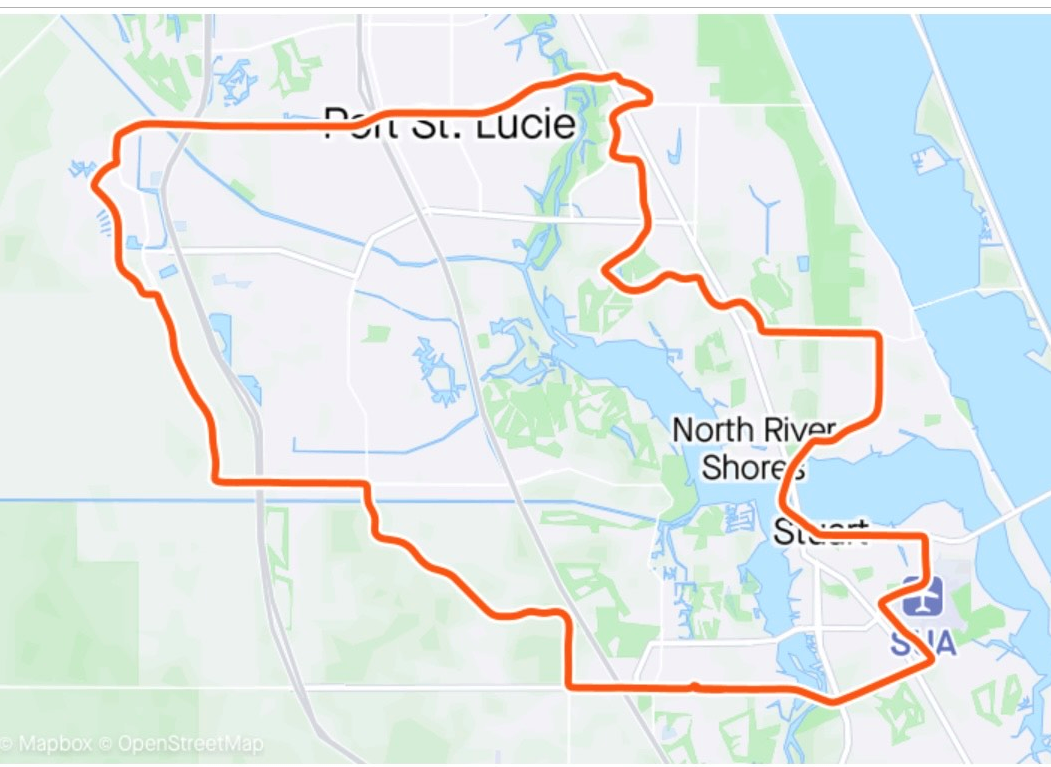 This ride will take you into "The Hills" of Jensen Beach via Savannah Rd or the beaches. Multiple laps in the hills can be accomplished if desired. Average distance 30 miles. Average pace 15-17mph pace. B and C riders are wend Back or lcome as we all join up at the end.