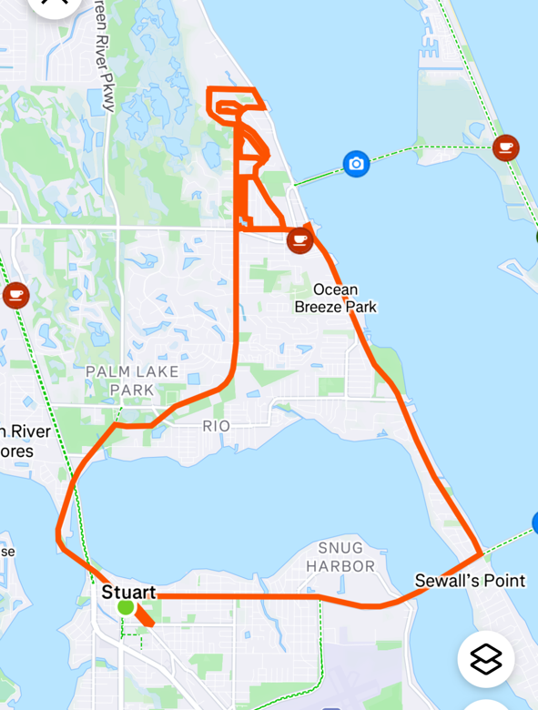 Snack stop along the way in Jensen before returning via the Island to Stuart.